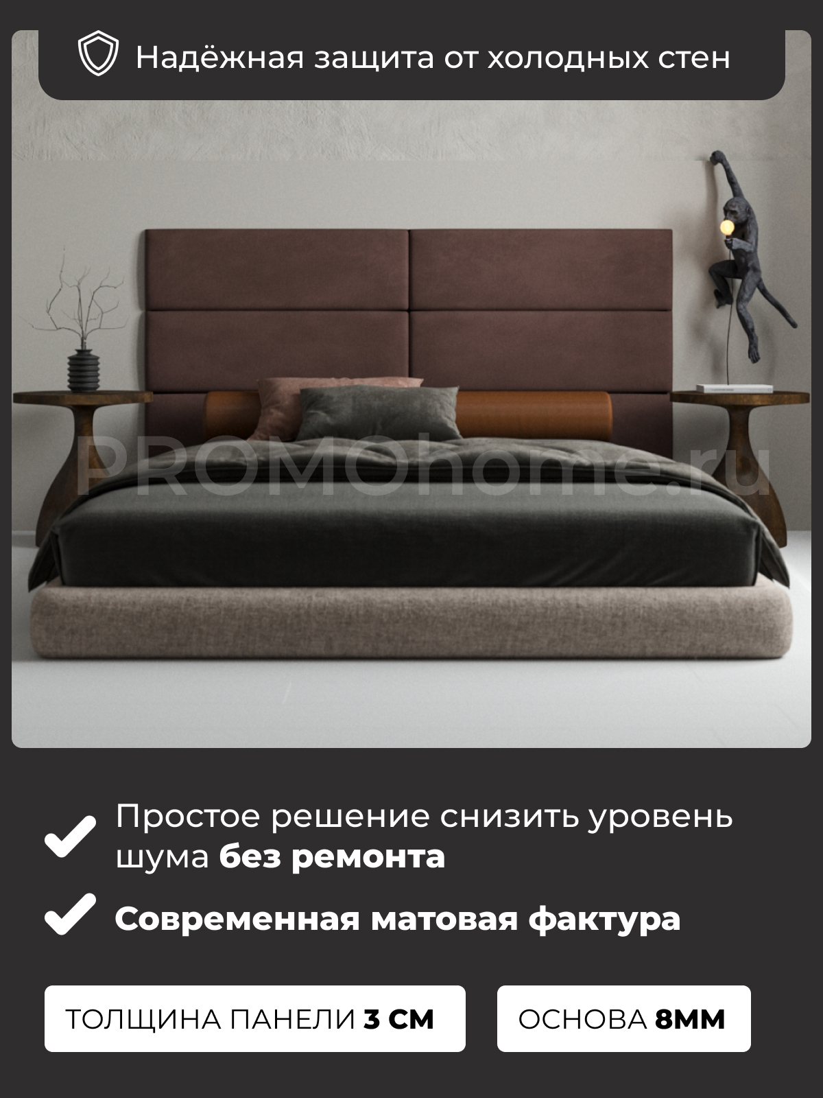 Мягкие стеновые панели серии "Элемент" от PROMOhome - это стильное решение , которое придаст вашему интерьеру новый вид и создаст уютную атмосферу в любом помещении.