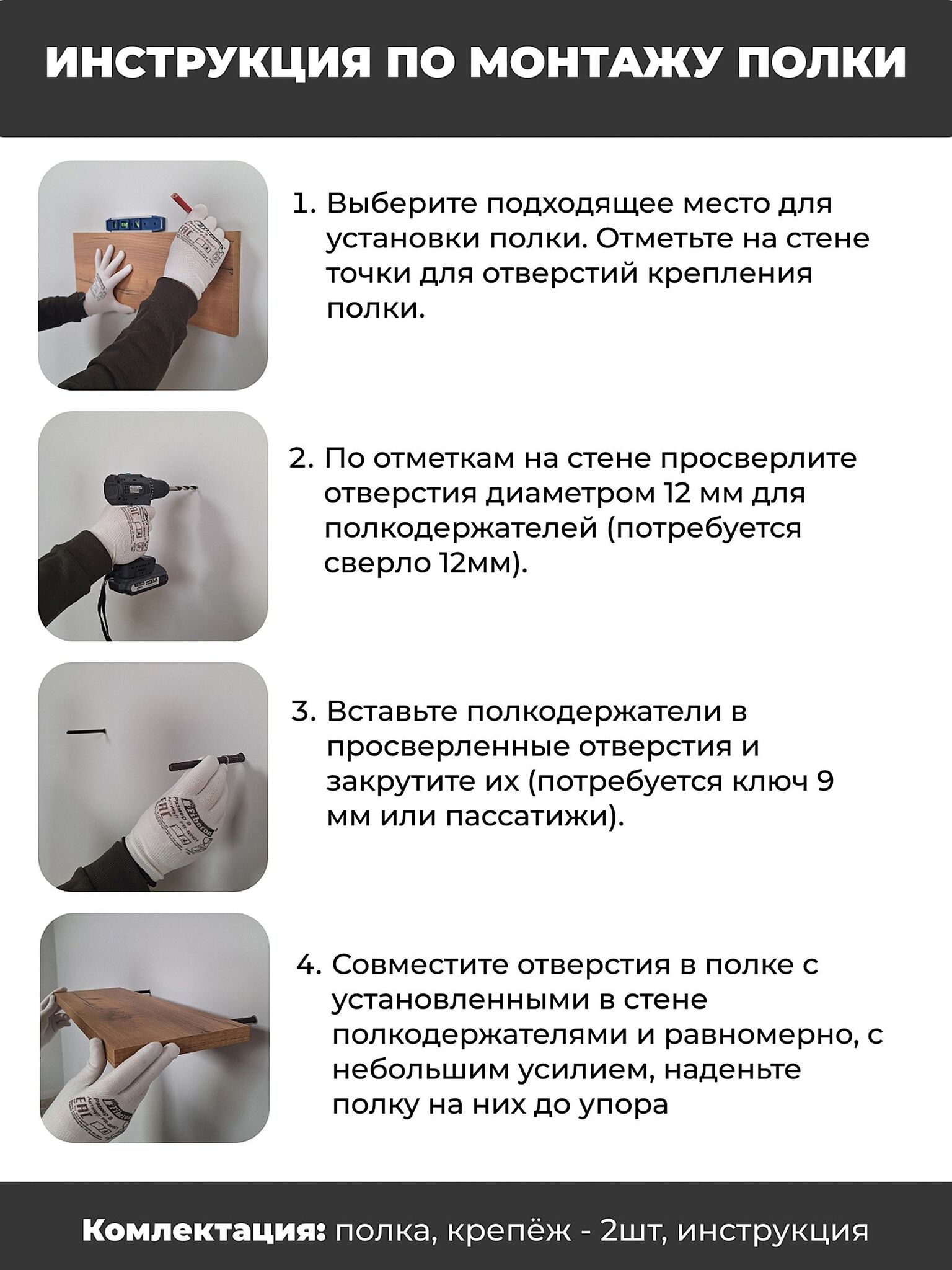 Полка 60х20см, инструкция